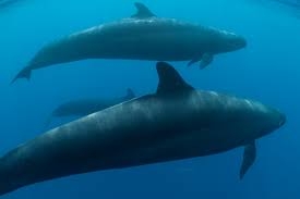 False killer whales are oceanic dolphins found in deep, open waters throughout the tropics . Entirely grey black in colour, they lack the white patches found on killer whales. False killer whales are so named because the shape of their skulls, not their external appearance, is similar to that of killer whales. Reaching up to 6 meters in length, the species behaves much more like a smaller dolphin, swimming quickly, occasionally leaping, and sometimes approaching whale watching vessels. Killer whales are found in all oceans. While they are most abundant in colder waters like Antarctica, Norway, and Alaska, they are also found in tropical and subtropical waters. The most well-studied killer whale populations occur in the eastern North Pacific Ocean. They eat Orcas, also known as killer whales despite being members of the same family as dolphins, are apex predators who are known to feed on nearly every species of large whale.