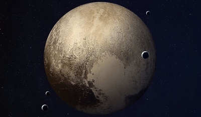 When Pluto is closer to the sun, its surface ices thaw and temporarily form a thin atmosphere, consisting mostly of nitrogen, with some methane. Pluto’s low gravity, which is a little more than one-twentieth that of Earth’s, causes this atmosphere to extend much higher in altitude than Earth’s. When traveling farther away from the sun, most of Pluto’s atmosphere is thought to freeze and all but disappear. Still, in the time that it does have an atmosphere, Pluto can apparently experience strong winds. The atmosphere also has brightness variations that could be explained by gravity waves, or air flowing over mountains.