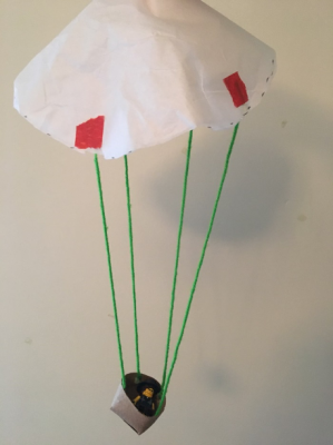 If your design is good, and the size of your parachute and its payload are in proportion, then your action figure should have a slow, safe landing If your parachute is fast then you need to check its design and make another using the spare plastic bag Try out different canopy sizes different string lengths, different weights, different wind direction (when you take it outdoors) and so on.