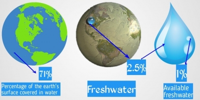 Water is a finite resource: there are some 1 400 million cubic kilometres on earth and circulating through the hydrological cycle. Nearly all of this is salt water and most of the rest is frozen or underground. Only one-hundredth of 1 percent of the world’s water is readily available for human use.