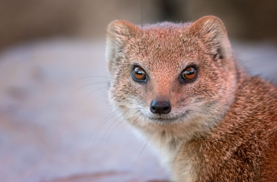 Mangoose is a small predatory carnivore, found predominantly in Africa and some parts of South Asia. Most species have greyish or brown fur, while others have a striped coat and a ringed tail. It has a long body with short legs and a tapered snout.
