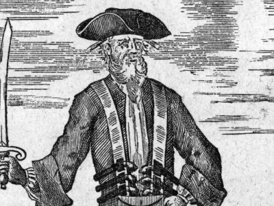 Edward Teach, better known as Blackbeard, was a notorious English pirate in the Caribbean Sea during the early 18th century, a period of time referred to as the Golden Age of Piracy. His best known vessel was the Queen Anne’s Revenge, which is believed to have run aground near Beaufort Inlet, North Carolina in 1718.