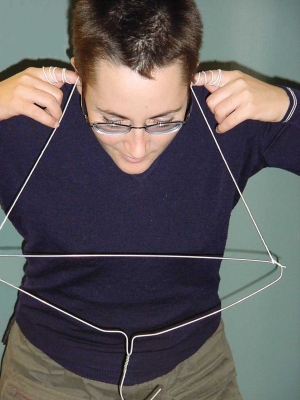 5. Now, undo the loops and put the string, along with your fingers, into your ears. Ask your friend to hit the hanger with the spoon again.