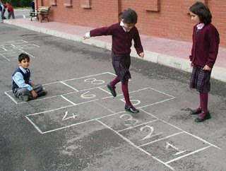 Do you play hopscotch? Children all over the world play it. In China, hopscotch is called Gat Fei Gei, which means “One-Foot Jumping Flying Machine”. In Italy, it’s called the Bell. In Austria, it’s the Temple. In Myanmar, children squat with hands on their hips as they jump the squares.