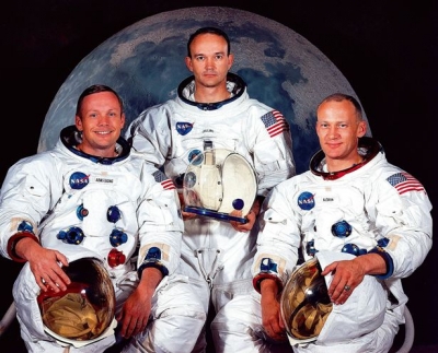 Commander Neil Armstrong and lunar module pilot Edwin Aldrin formed the American crew that landed the Apollo Lunar Module named ‘Eagle’ on July 20, 1969 at 20:17 UTC (coordinated universal time). Six hours later Armstrong became the first person to step on the Moon at 02:56 UTC. He climbed down the ladder and uttered the famous words, “That’s one small step for a man, one giant leap for mankind.”